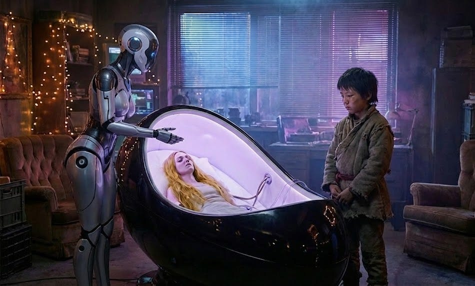 Bodhi had seen it too. His tears were forgotten. His breath caught in his throat. Not a glitch. A signal. A flicker of life—or something else entirely—from the silent woman in the machine.