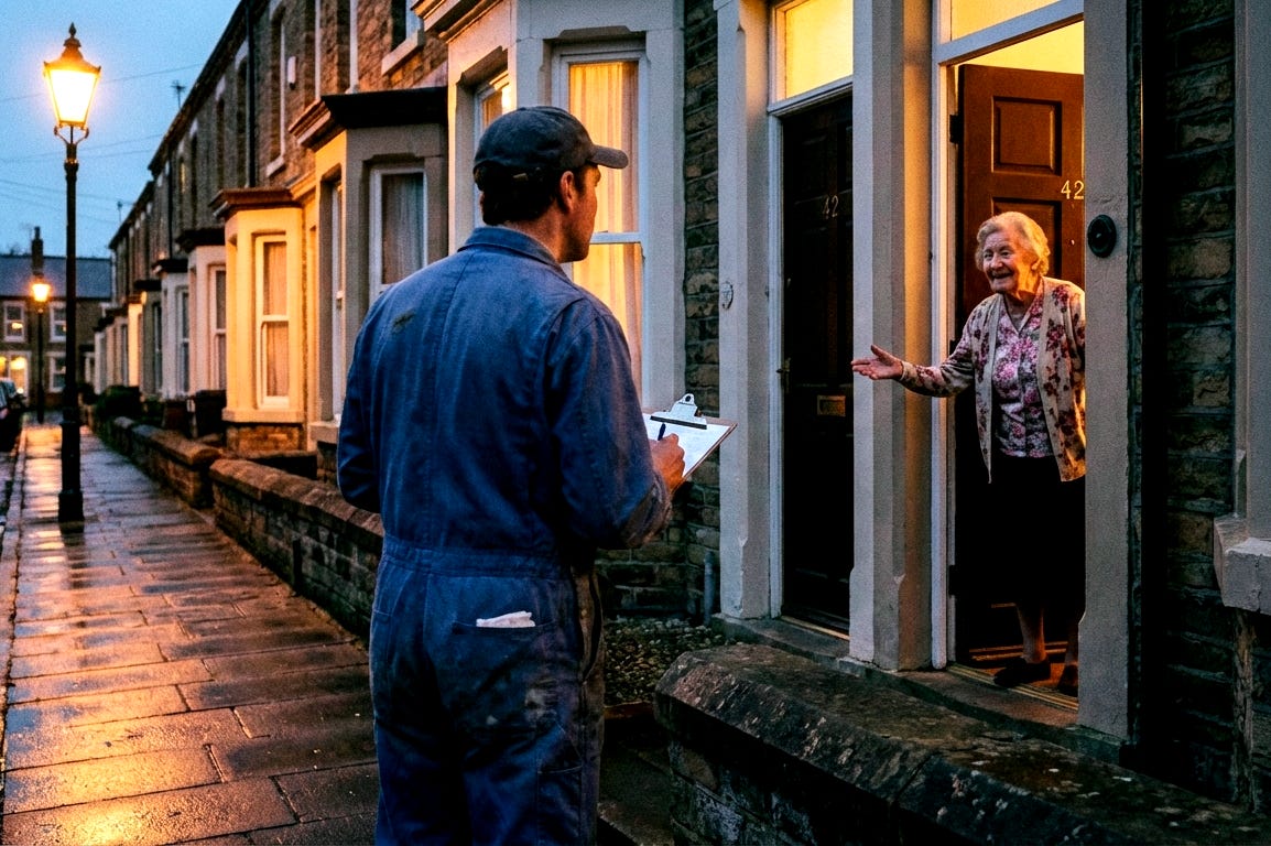“Oh, actually,” she said, and her face did the thing. The grateful, slightly embarrassed thing that said I don’t want to be a bother but. “There is the tap. It’s been dripping for weeks and I just can’t manage it myself anymore.”